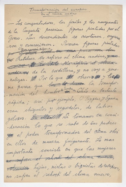 Transformación del europeo en el clima andino [manuscrito] Joaquín Edwards Bello.