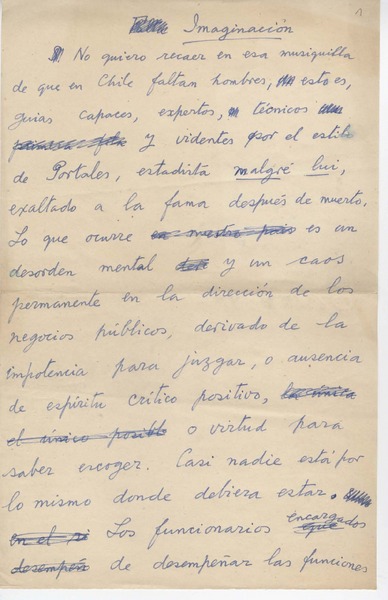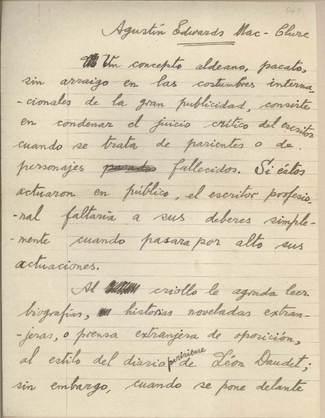 [Protección verdadera de la infancia...] [manuscrito] Joaquín Edwards Bello.