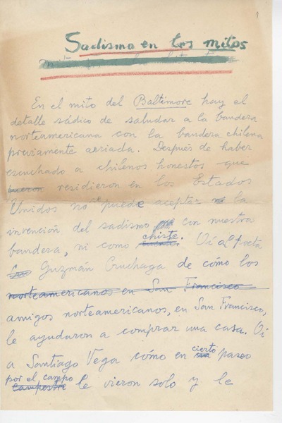 Sadismo en los mitos [manuscrito] Joaquín Edwards Bello.