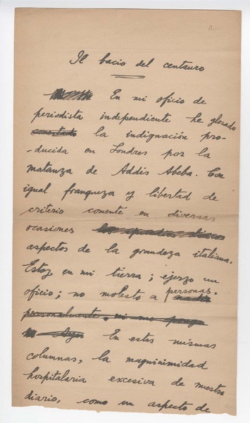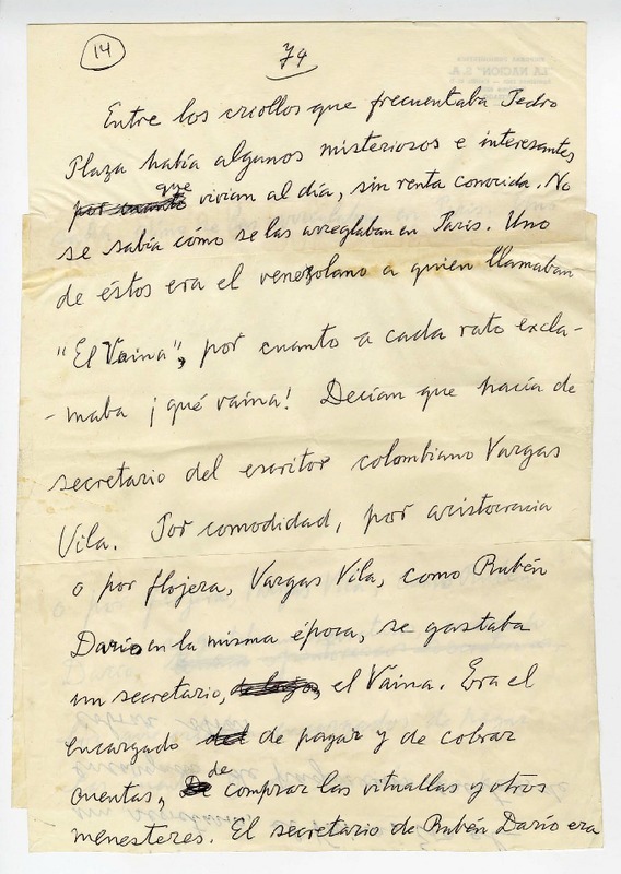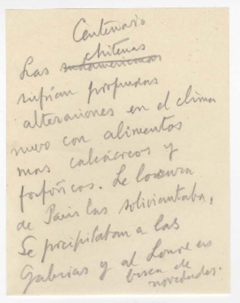 Centenario I [manuscrito] Joaquín Edwards Bello.