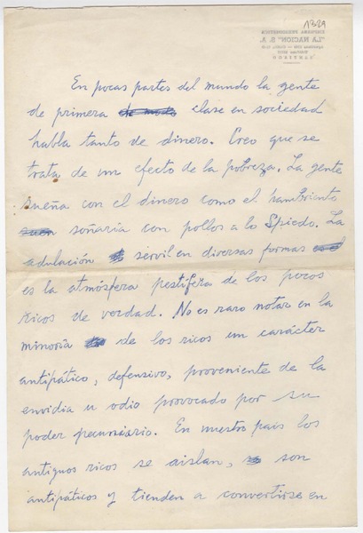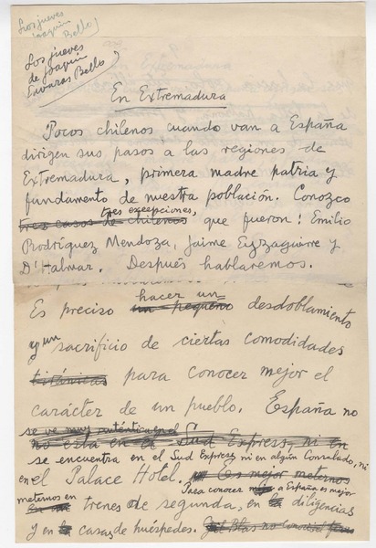[Se cree que no hay pobres en otras partes...] [manuscrito] Joaquín Edwards Bello.