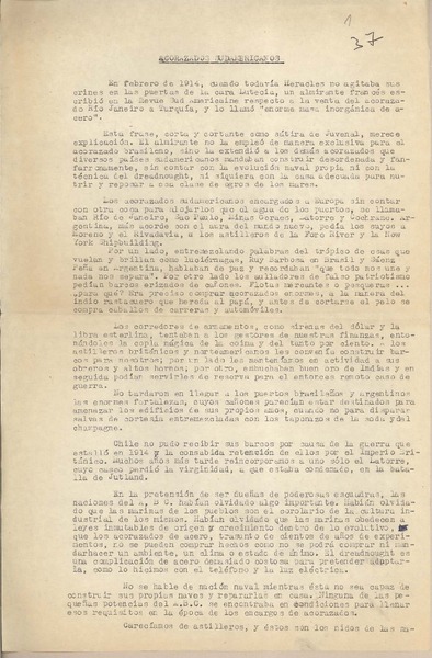Acorazados sudamericanos [manuscrito] Joaquín Edwards Bello.