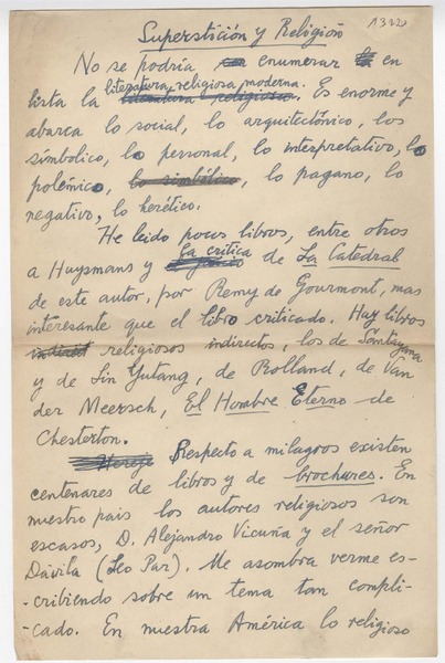 Superstición y religión [manuscrito] Joaquín Edwarsd Bello.