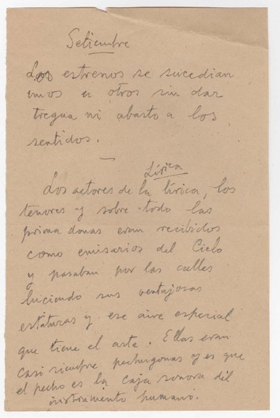 Sobre la sensibilidad en los papeles en el teatro [manuscrito] Nathanael Yáñez Silva.