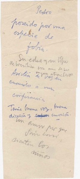 Recordando a Pedro Prado [manuscrito] Fernando Santiván.