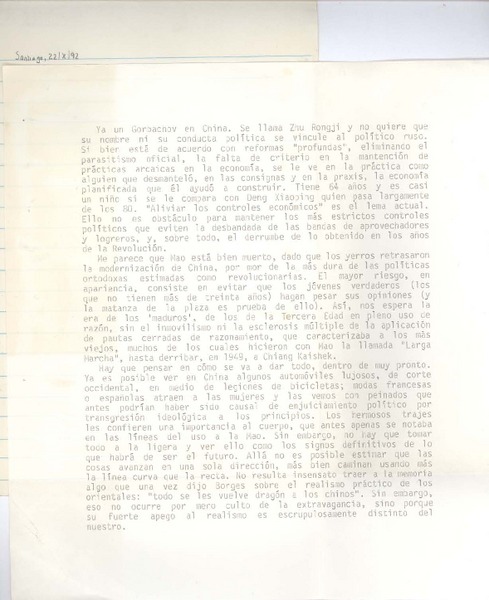 [Ya un Gorbachov en China...] [manuscrito] Alfonso Calderón.