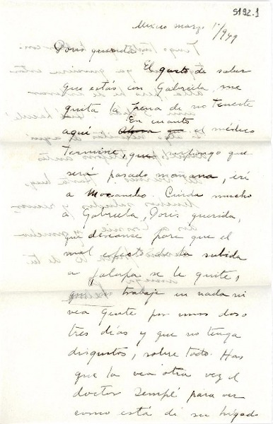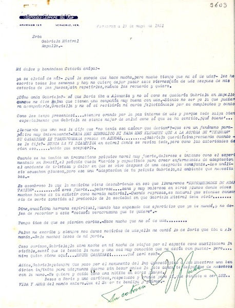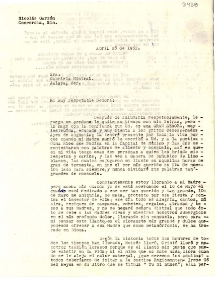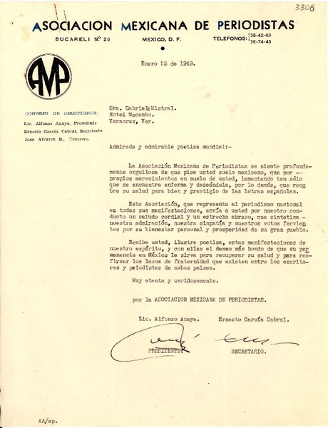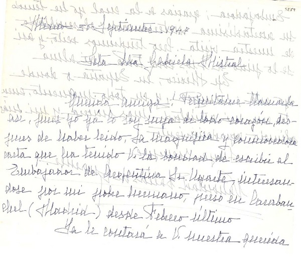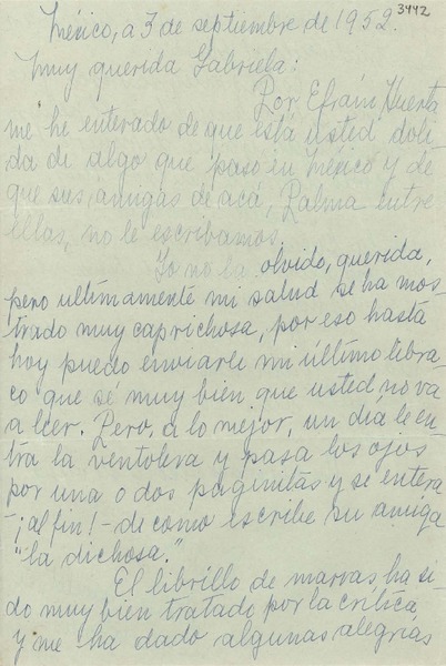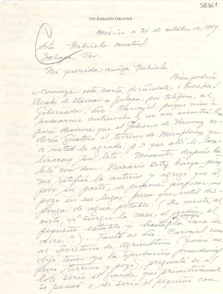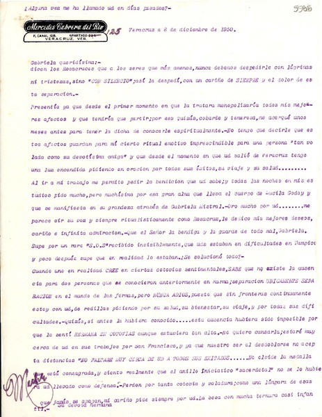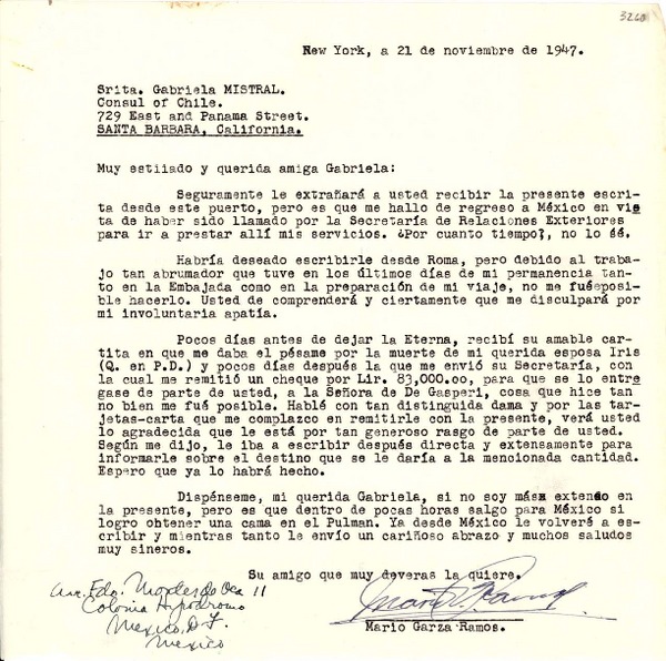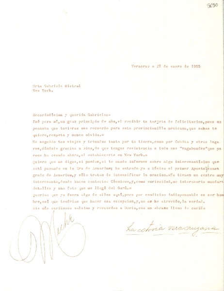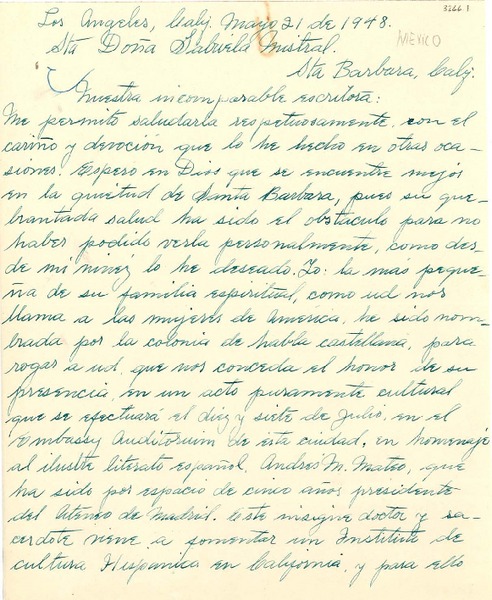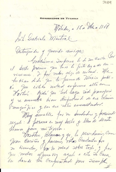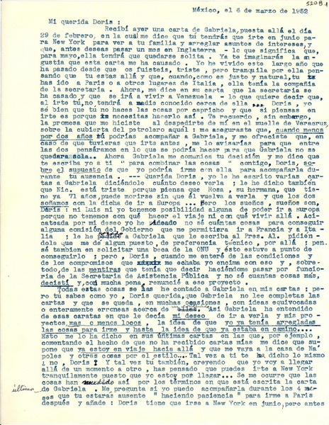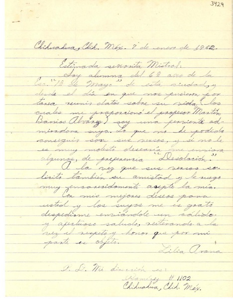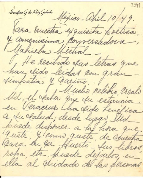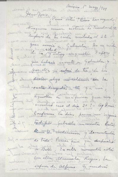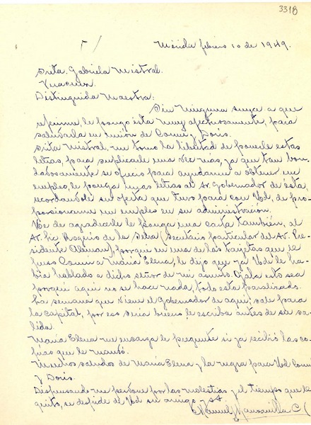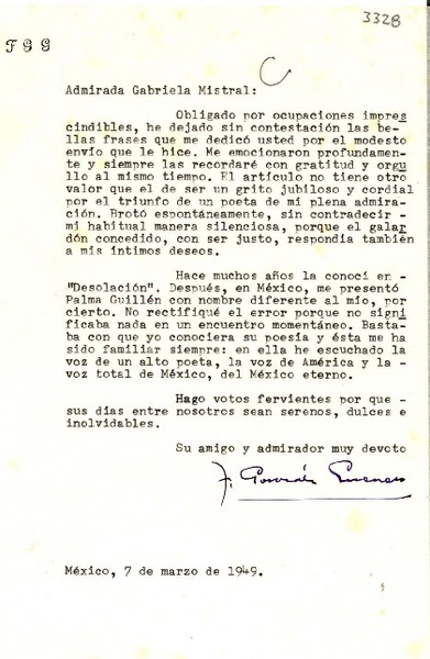 García L., Luis - Manuscritos mexicanos - Correspondencia - Mistral, Gabriela