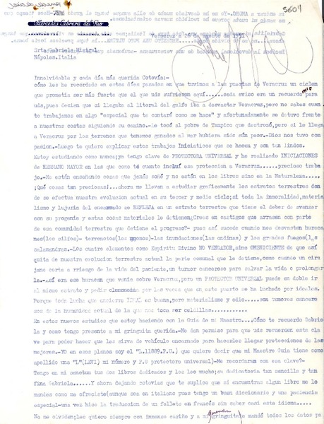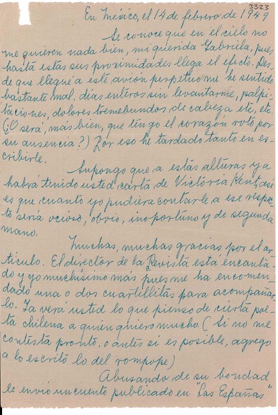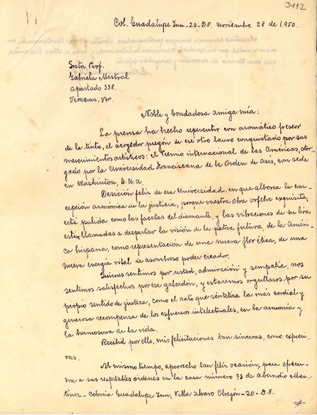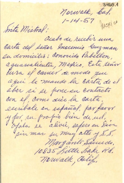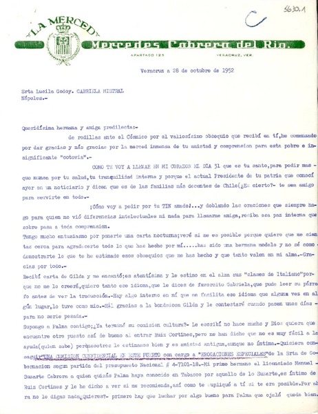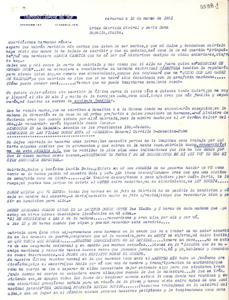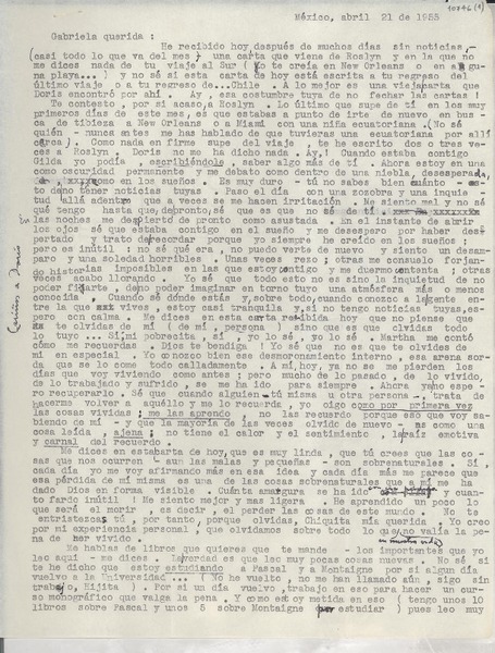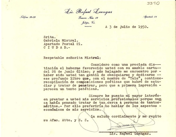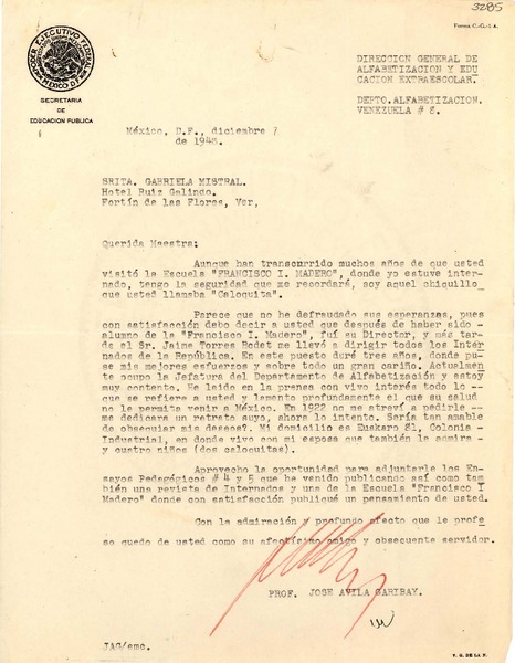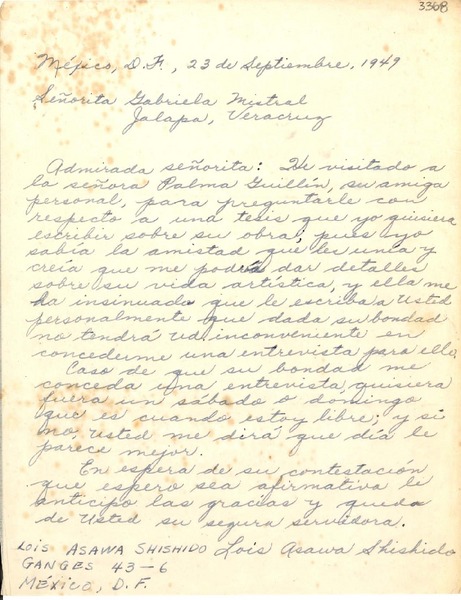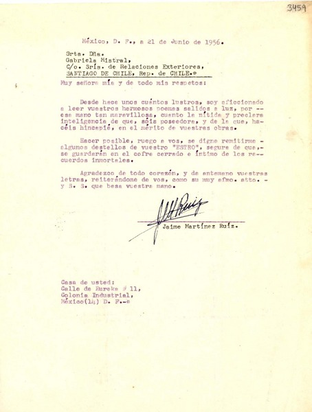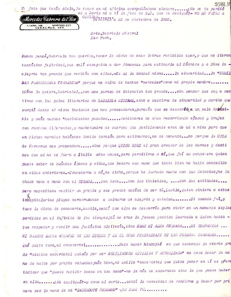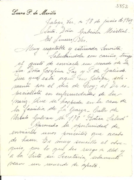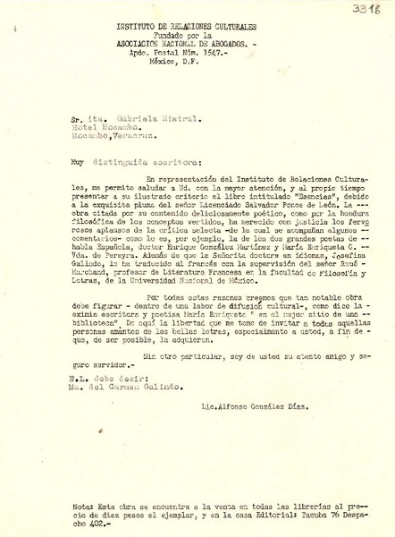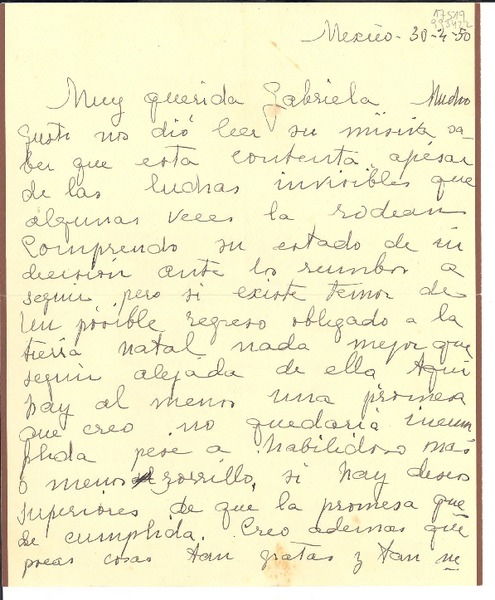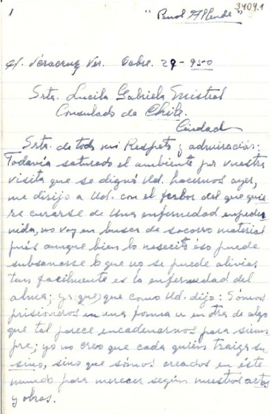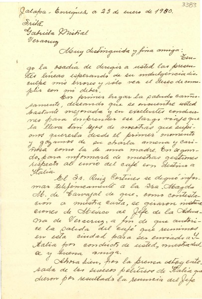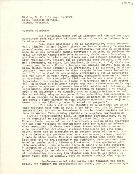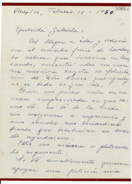 García L., Luis - Manuscritos mexicanos - Correspondencia - Mistral, Gabriela