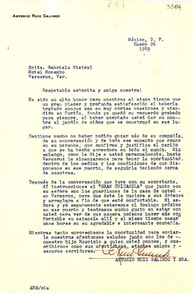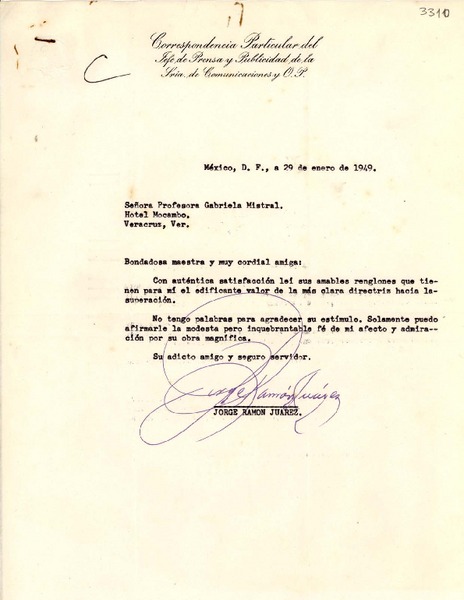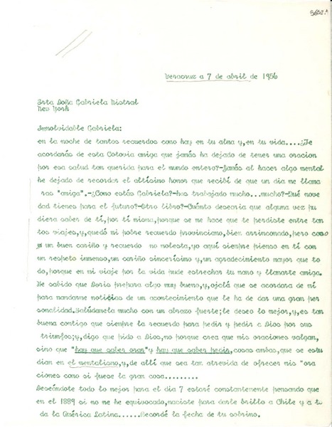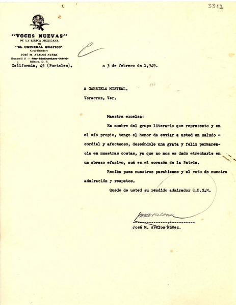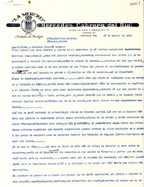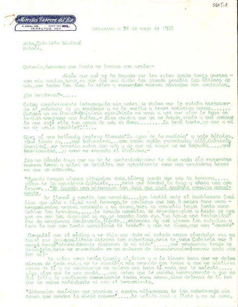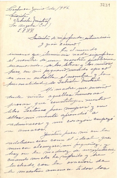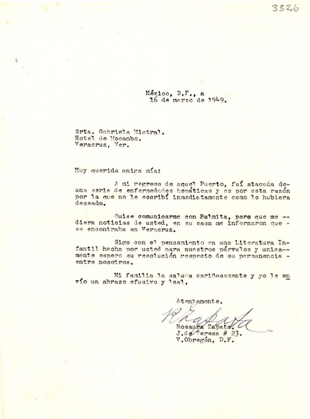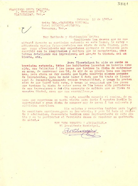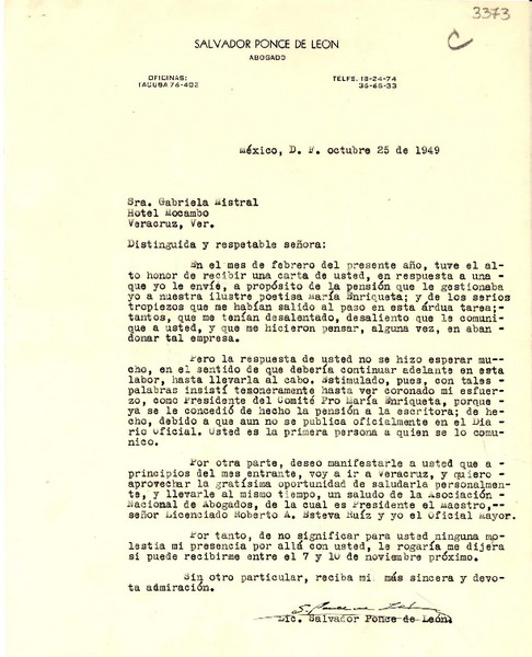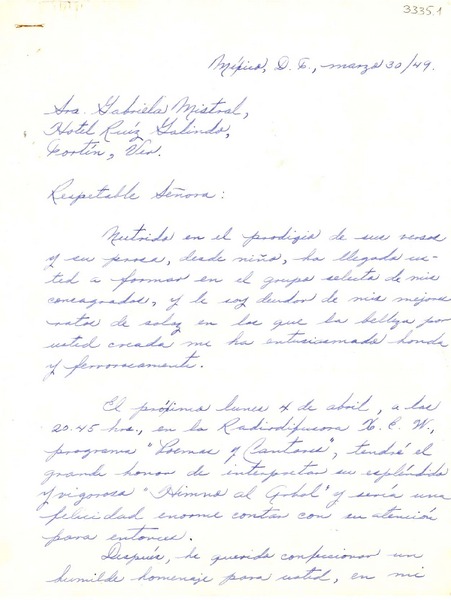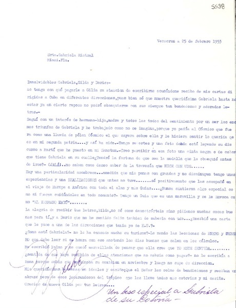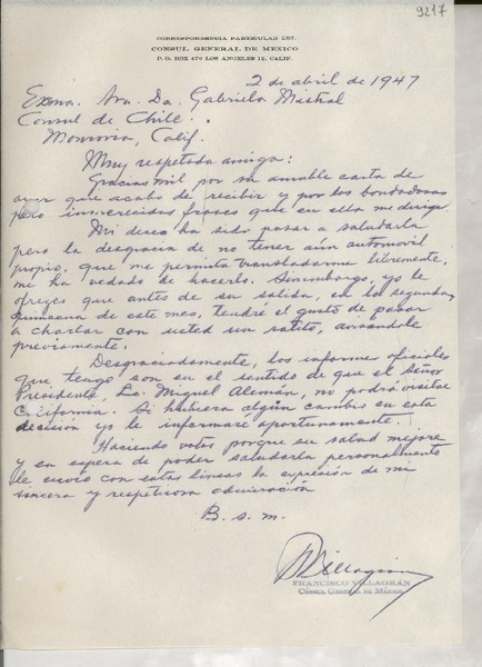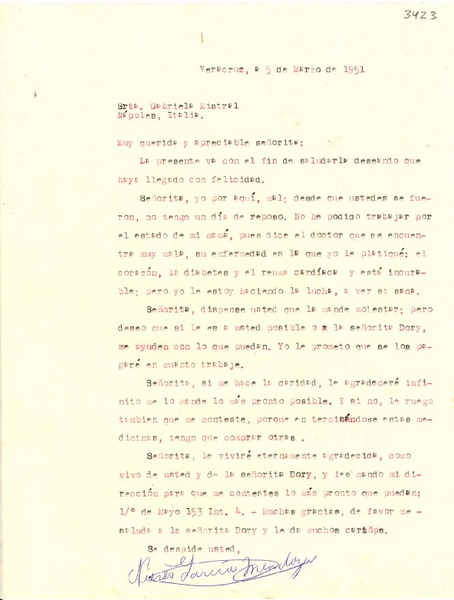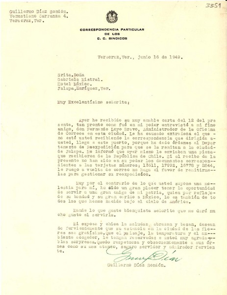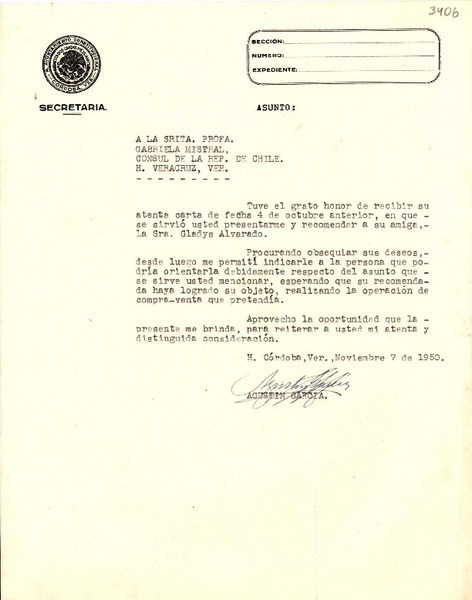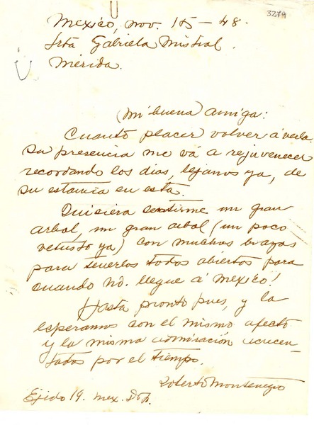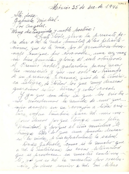García L., Luis - Manuscritos mexicanos - Correspondencia - Mistral, Gabriela