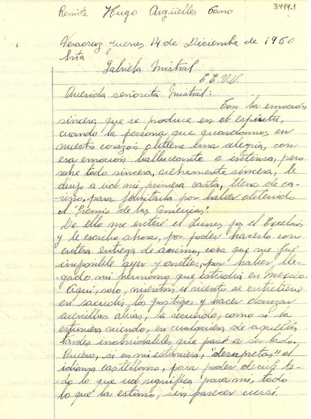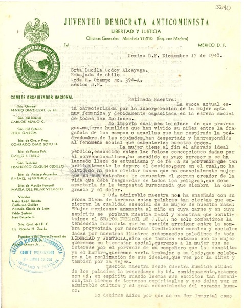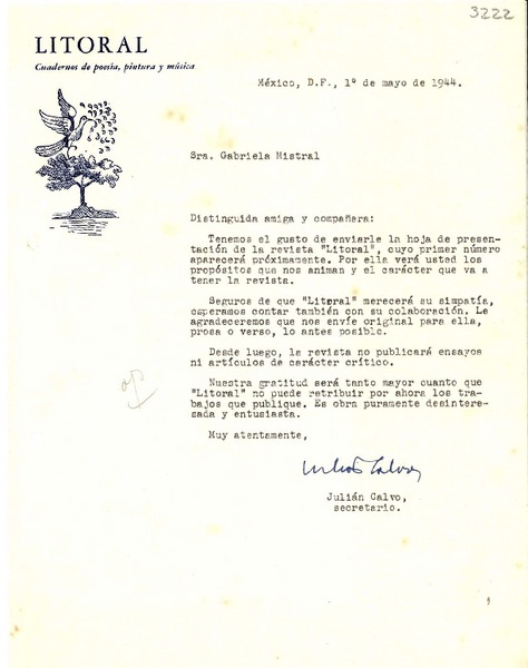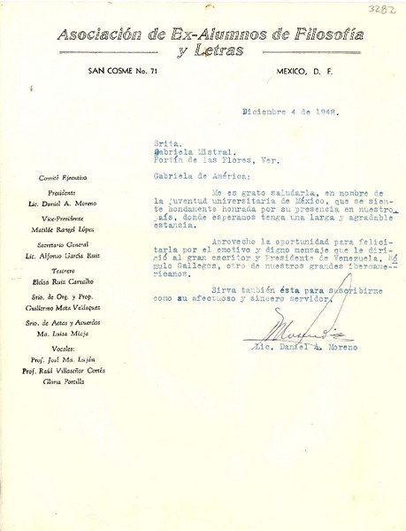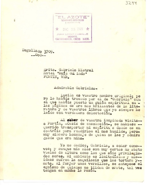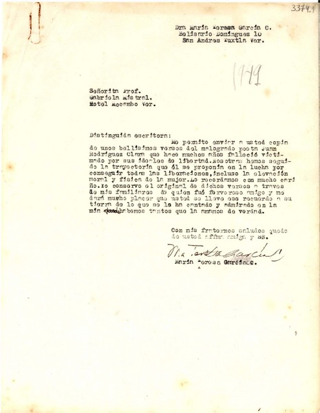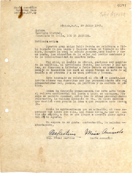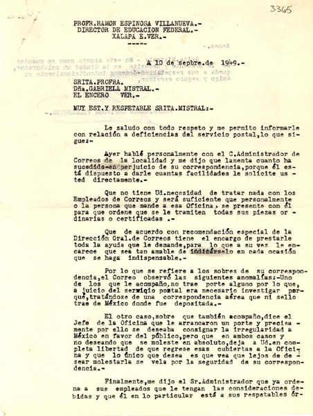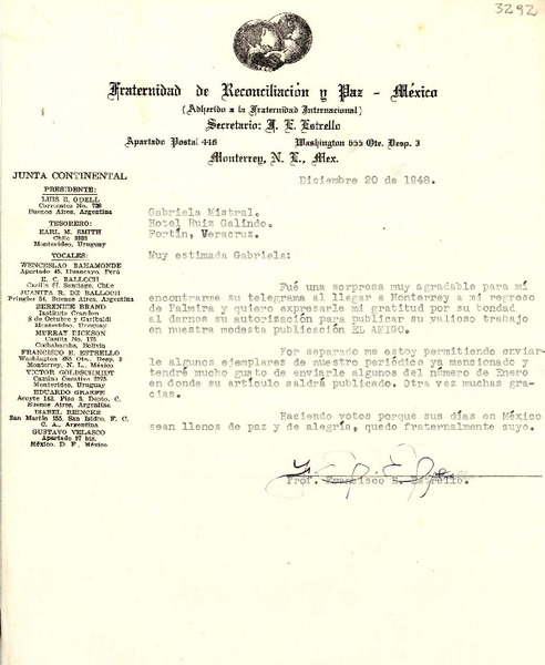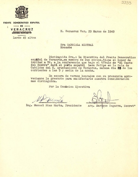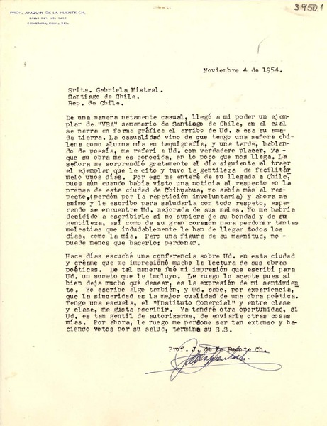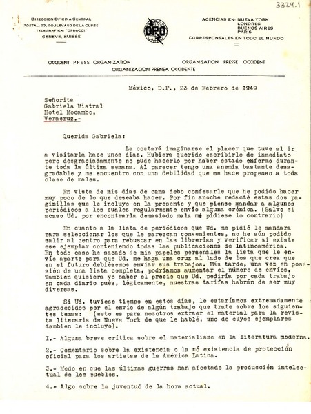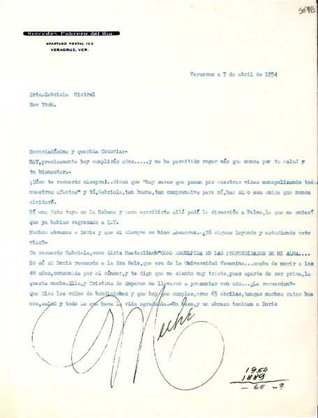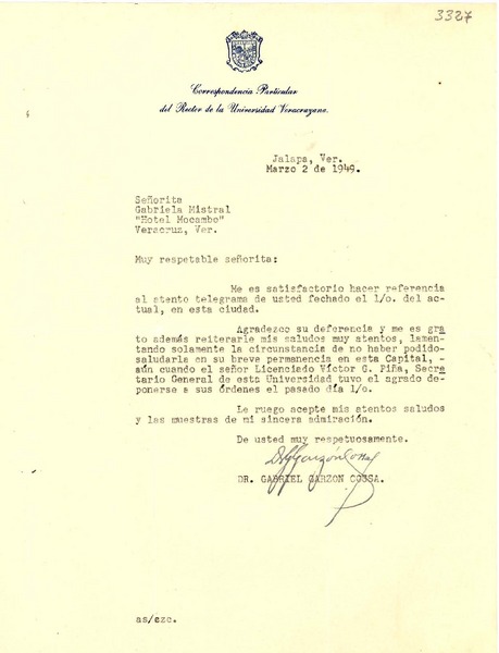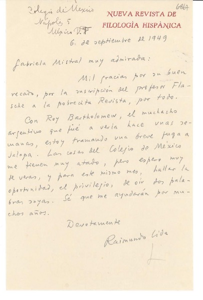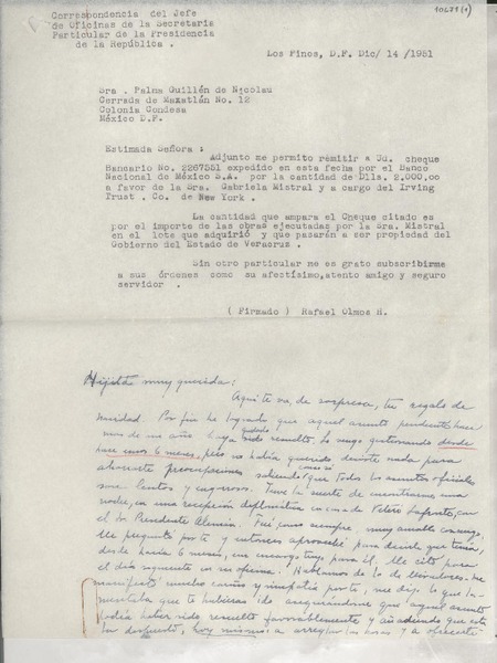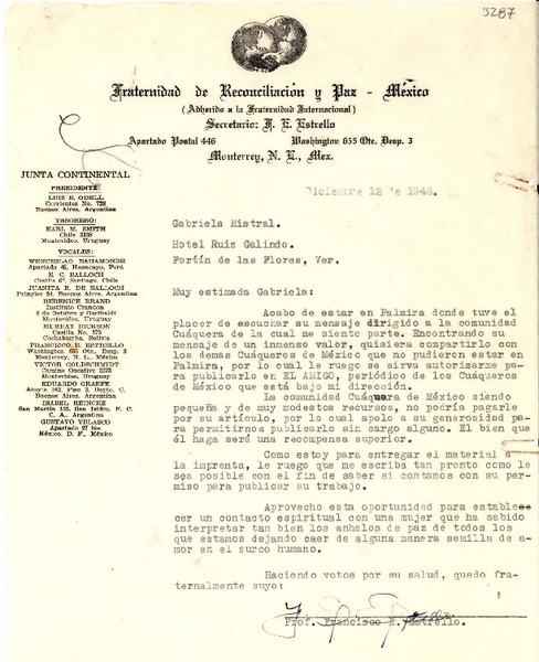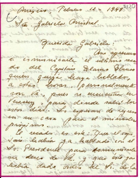 García L., Luis - Manuscritos mexicanos - Correspondencia - Mistral, Gabriela