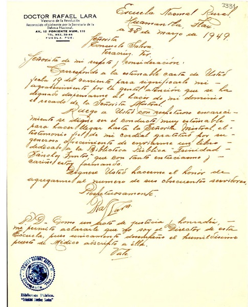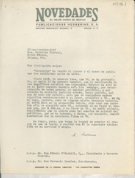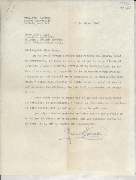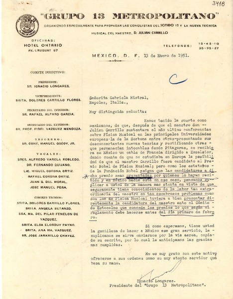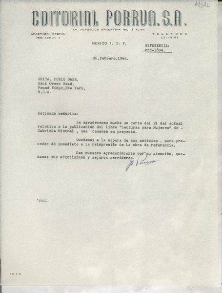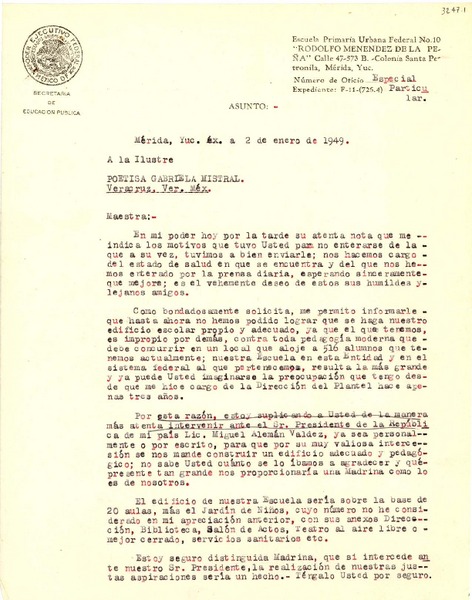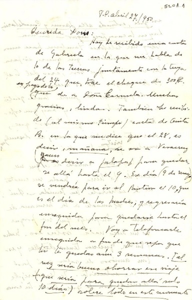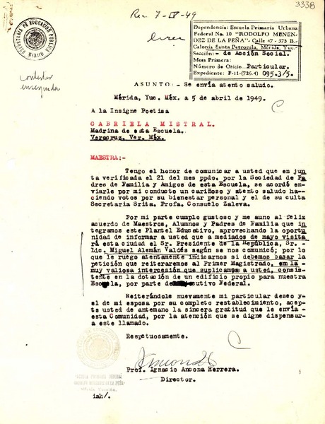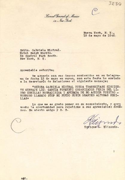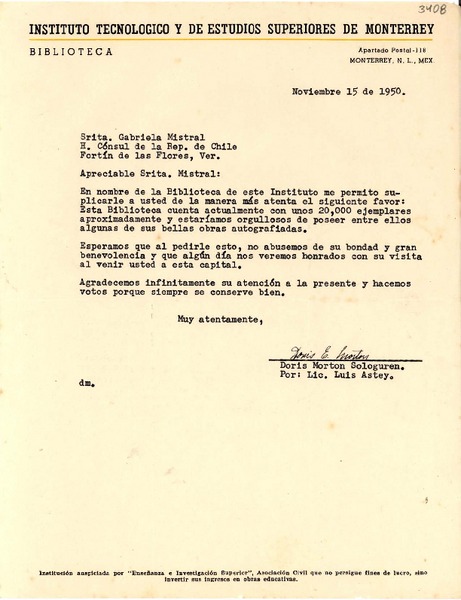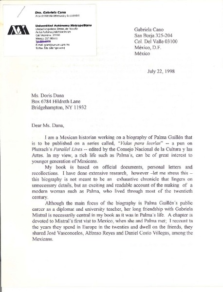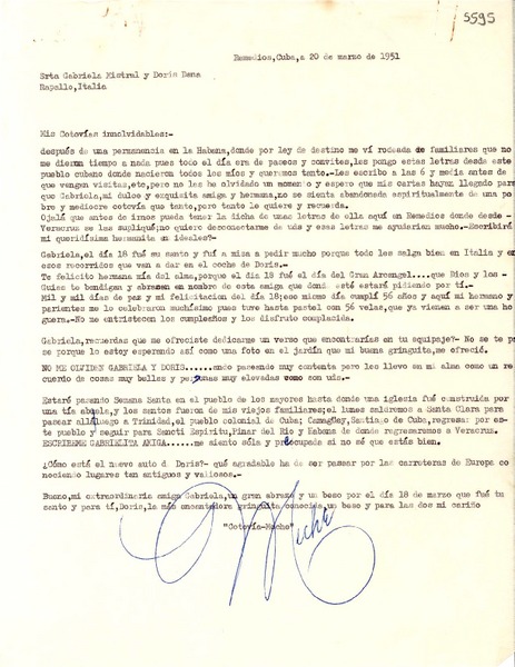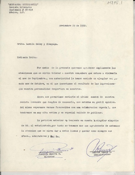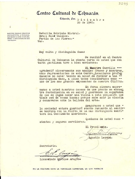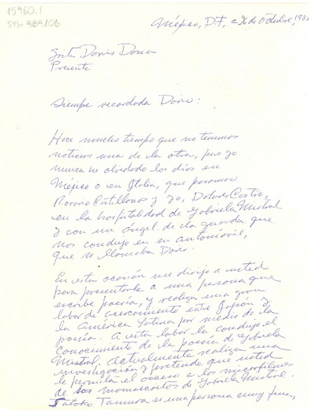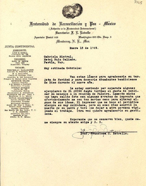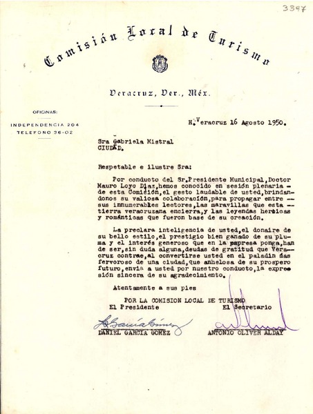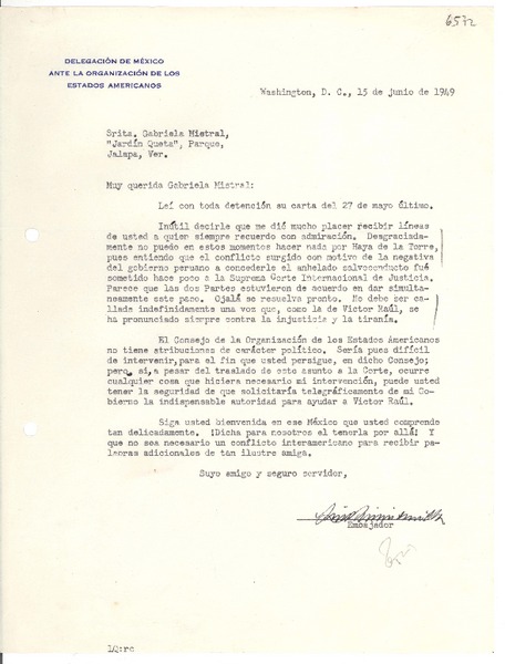García L., Luis - Manuscritos mexicanos - Correspondencia - Mistral, Gabriela