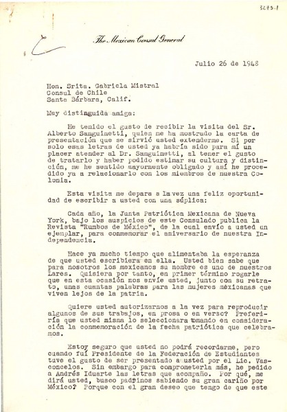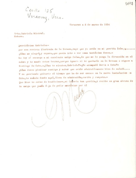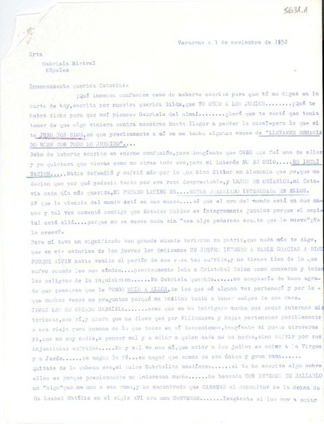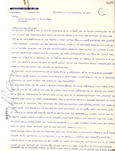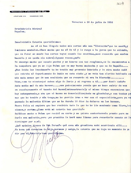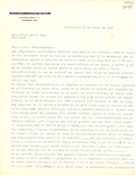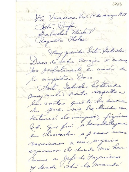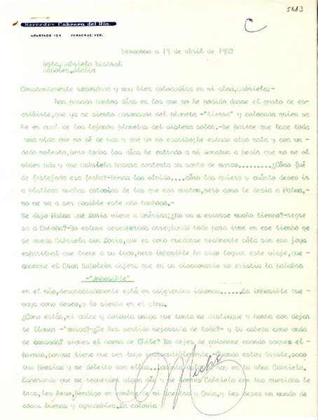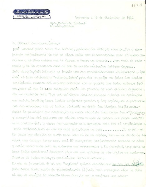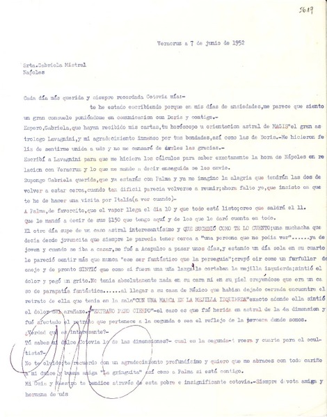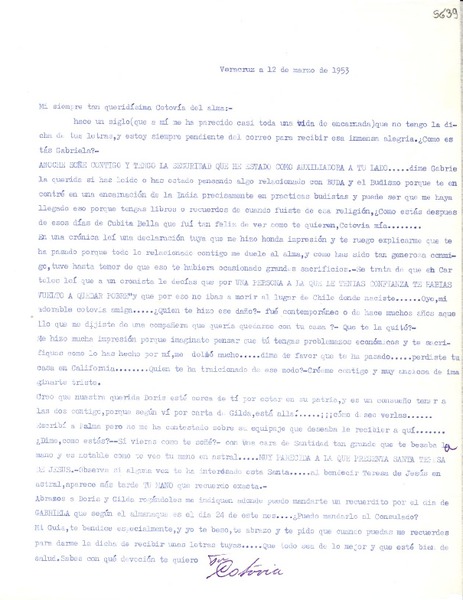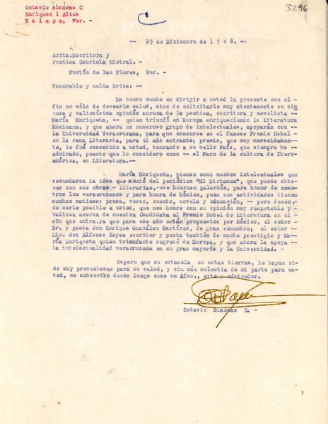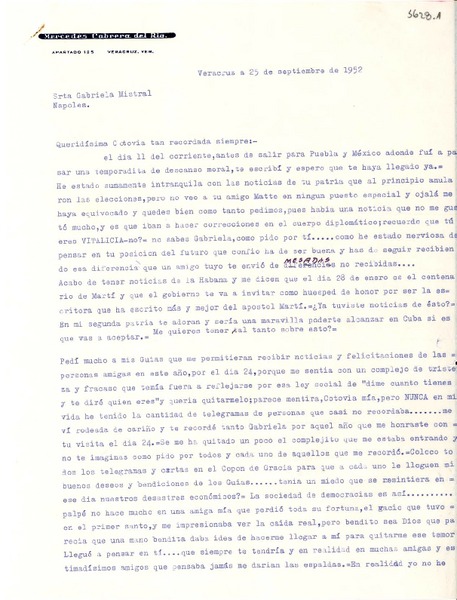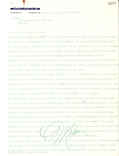 Vejar Vazquez, Octavio - Manuscritos mexicanos - Correspondencia - Mistral, Gabriela