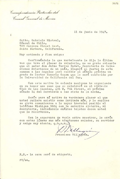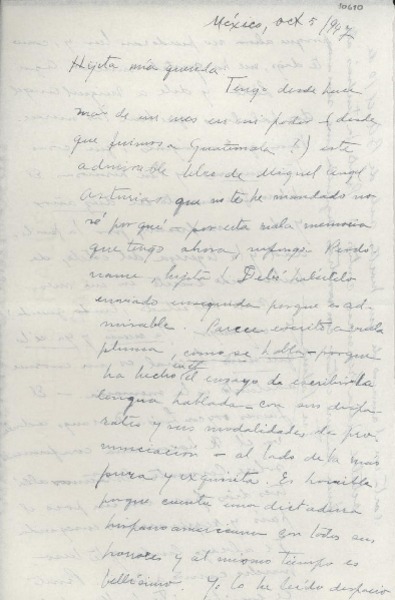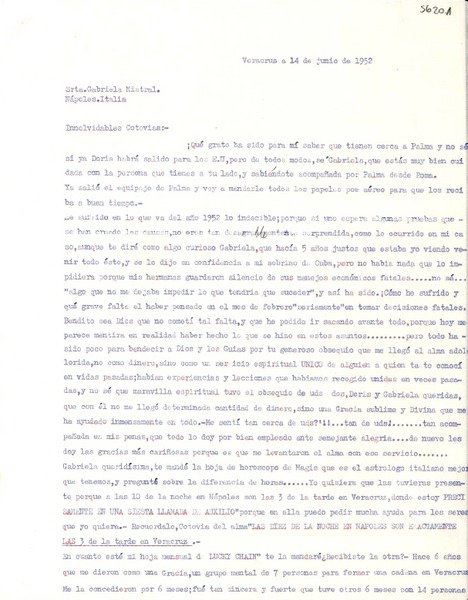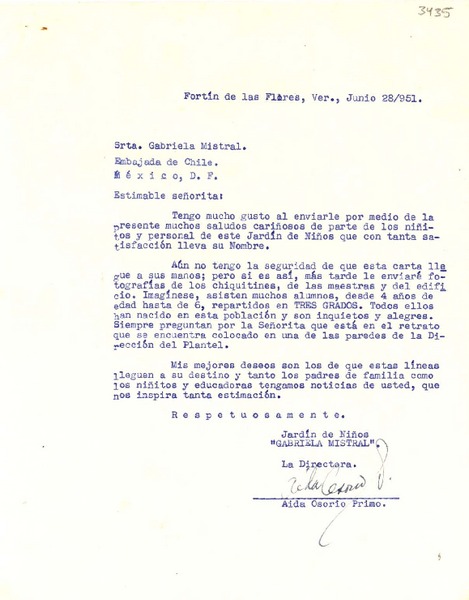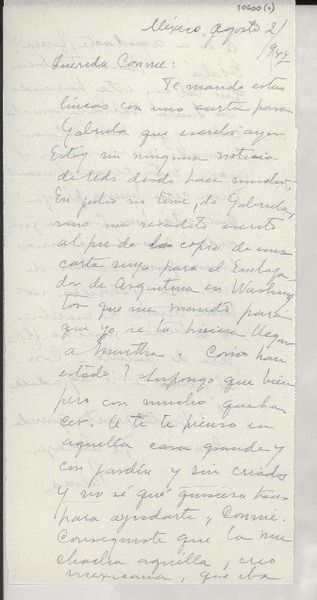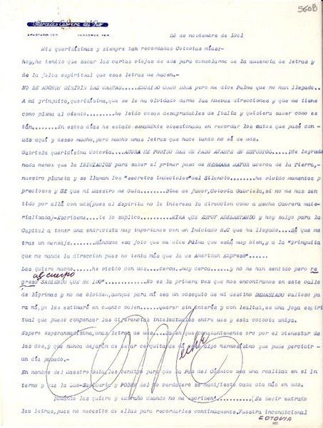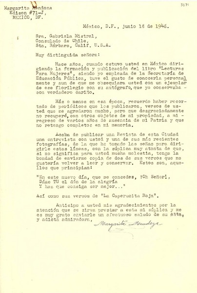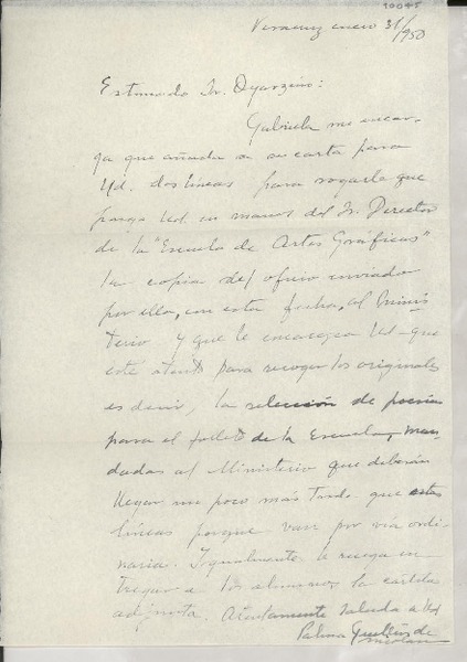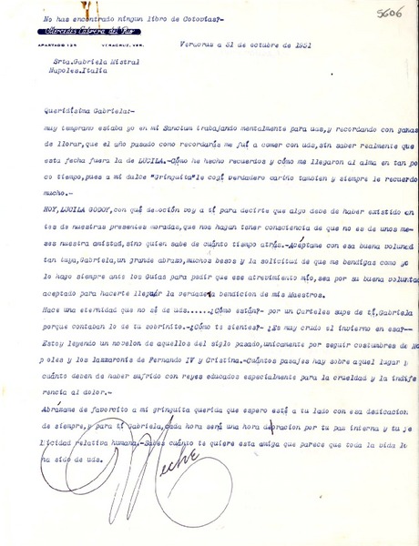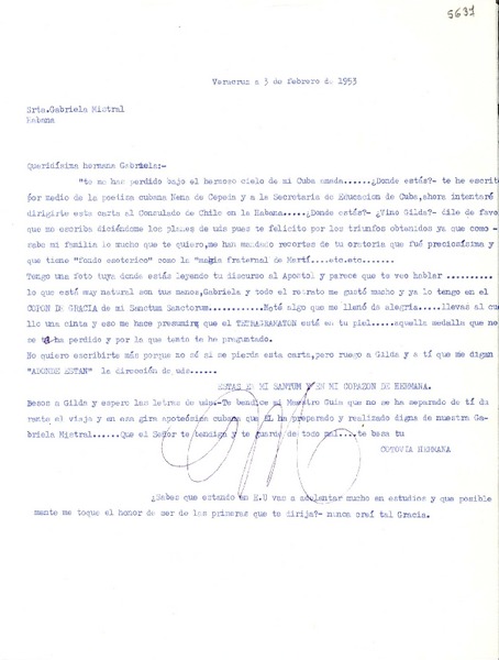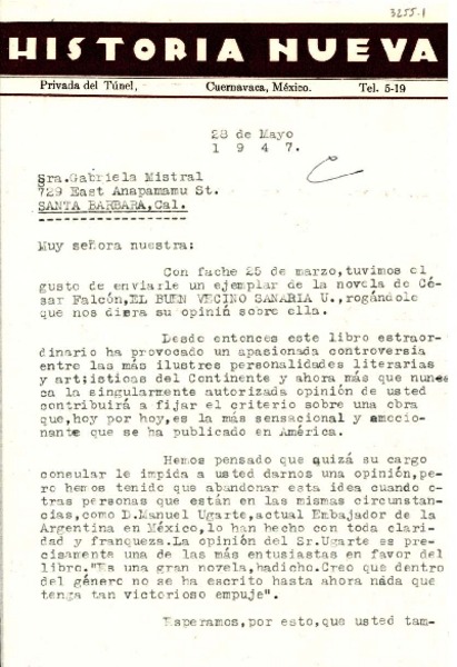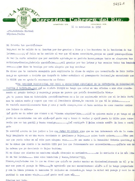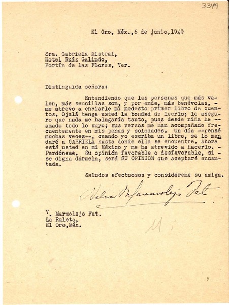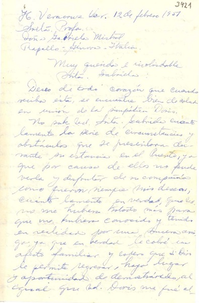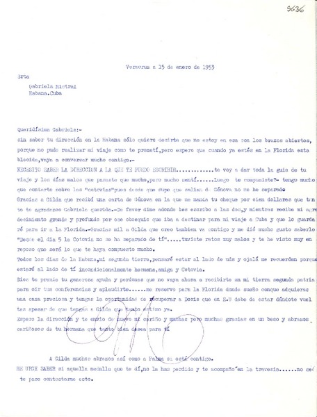Vejar Vazquez, Octavio - Manuscritos mexicanos - Correspondencia - Mistral, Gabriela