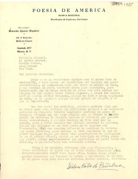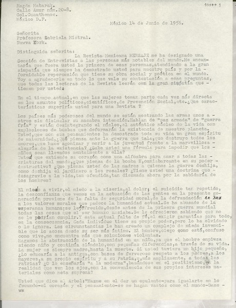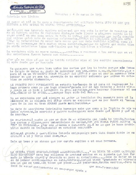 Mistral, Gabriela - Manuscritos mexicanos - Carvajal, Magda M. de - Correspondencia