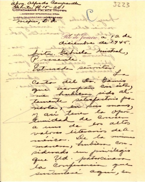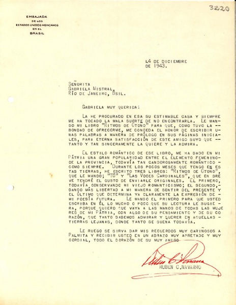 [Carta] 1938 dic. 20, Río de Janeiro, [Brasil] [a] Gabriela [Mistral] [manuscrito] Alfonso [Reyes].