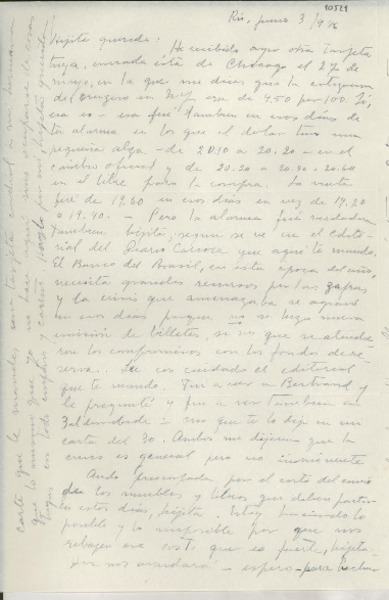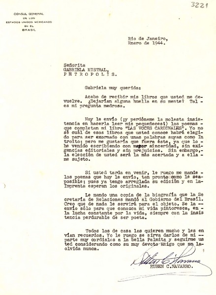 [Carta] 1934 mar. 22, Río [de Janeiro] [a] Gabriela Mistral [manuscrito] Alfonso [Reyes].