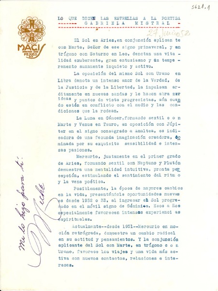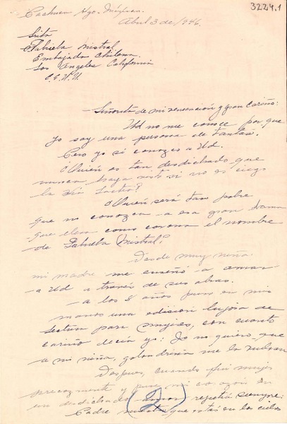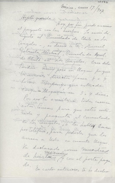 Mistral, Gabriela - Correspondencia - Manuscritos mexicanos