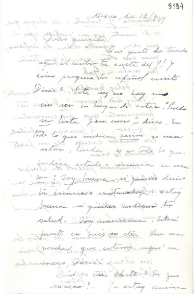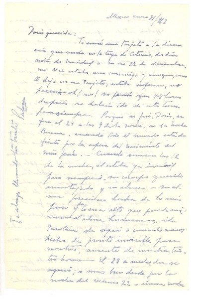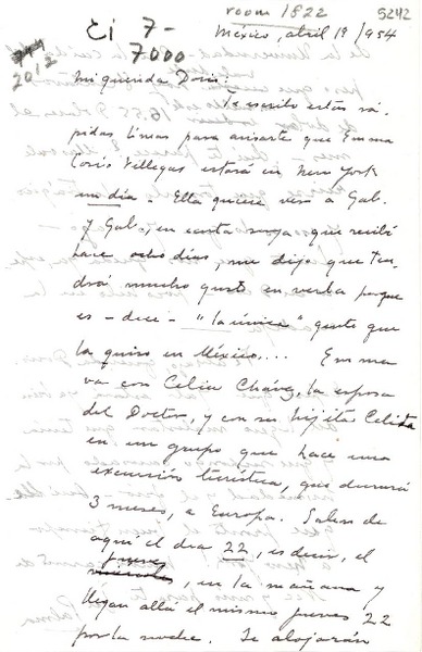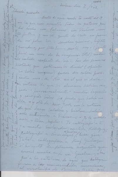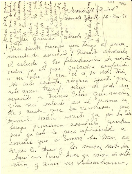 [Carta] 1942 dic. 7, México [a] Gabriela Mistral [manuscrito] Palma Guillén.