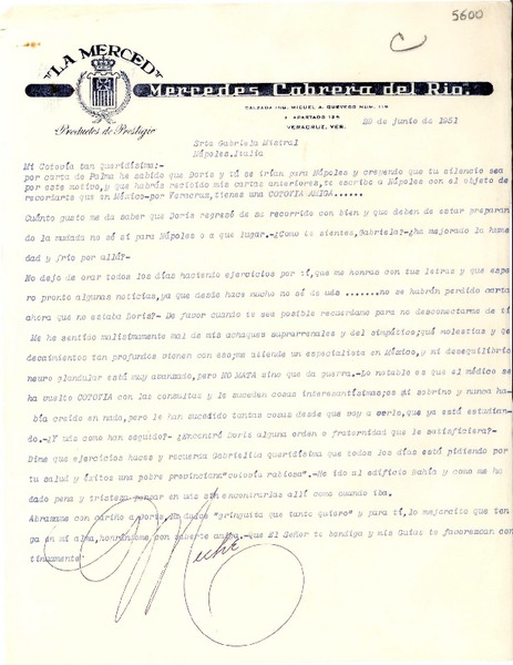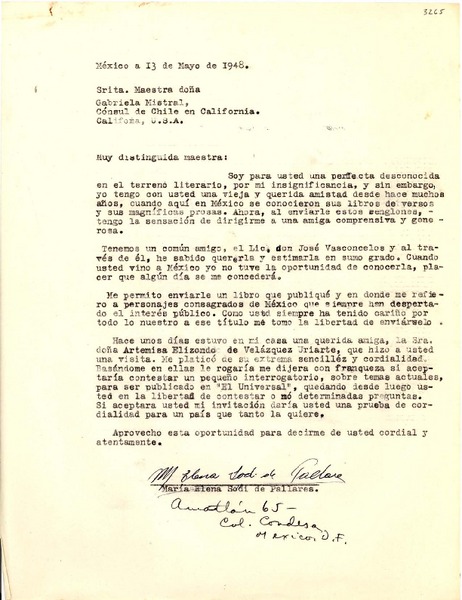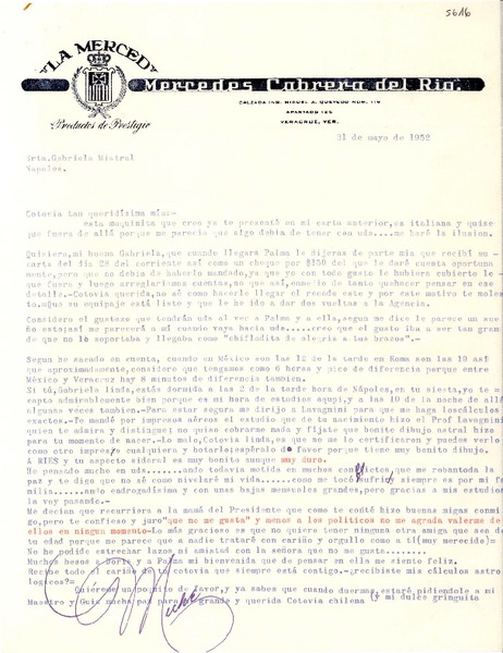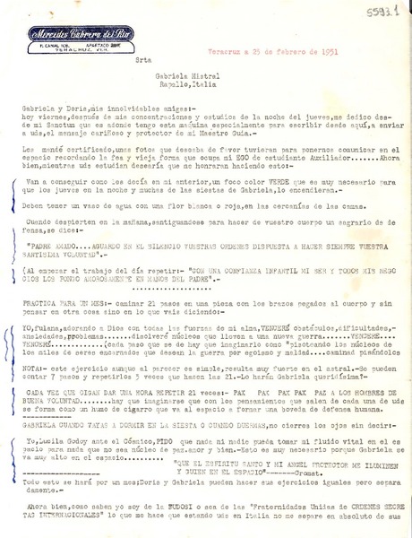 Lavalle Urbina, María - Manuscritos mexicanos - Correspondencia - Mistral, Gabriela