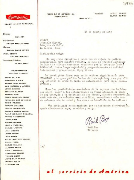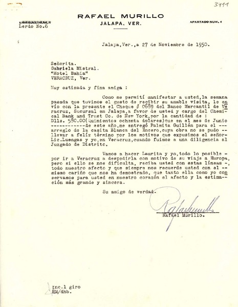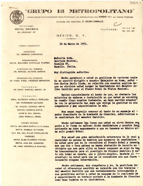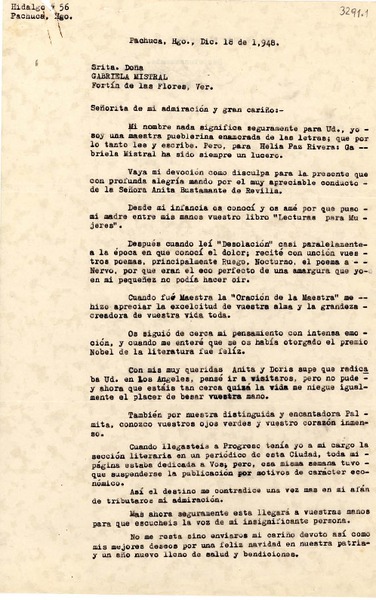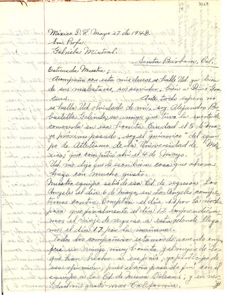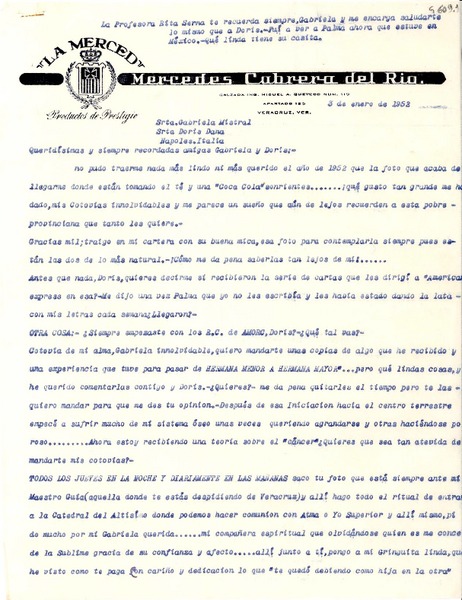 Molina B., Rafael - Manuscritos mexicanos - Correspondencia - Mistral, Gabriela