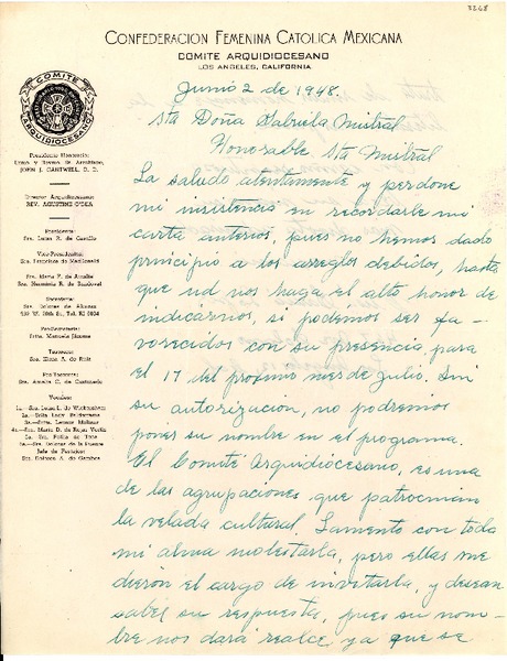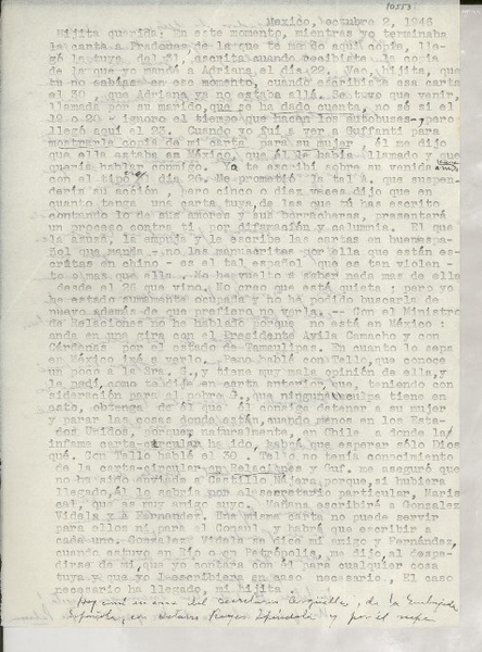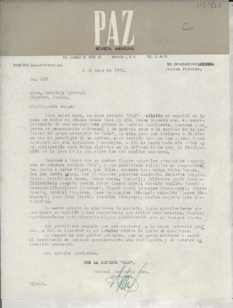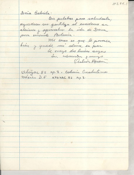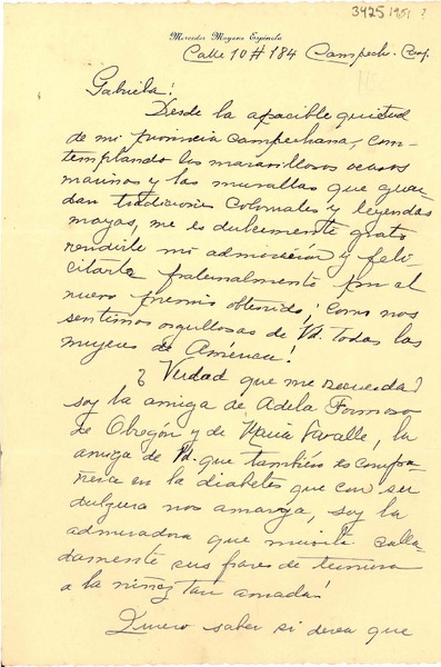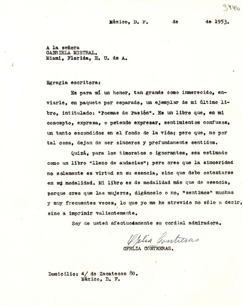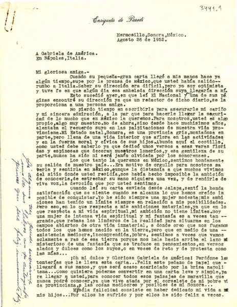Castrejón C., Adrián - Manuscritos mexicanos - Correspondencia - Mistral, Gabriela