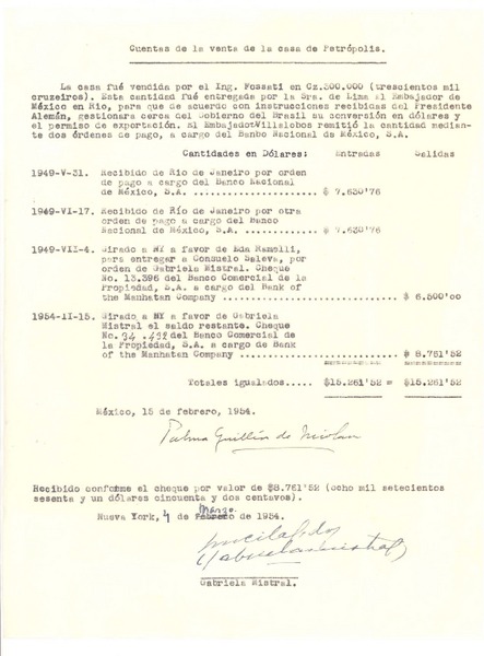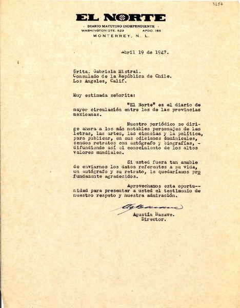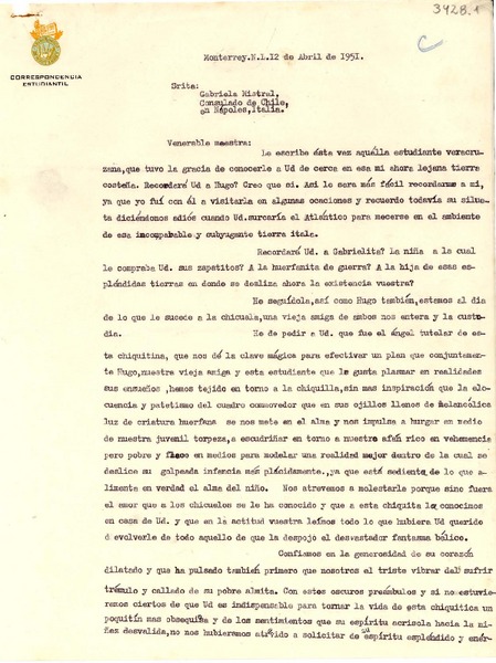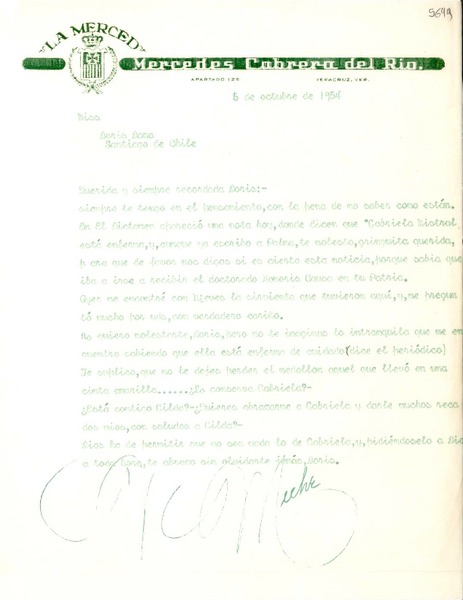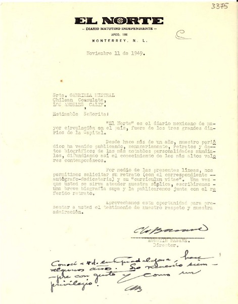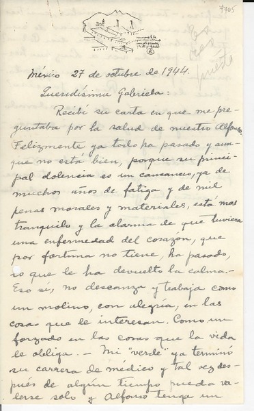 Alamo Blanco, Gonzalo - Manuscritos mexicanos - Correspondencia - Mistral, Gabriela