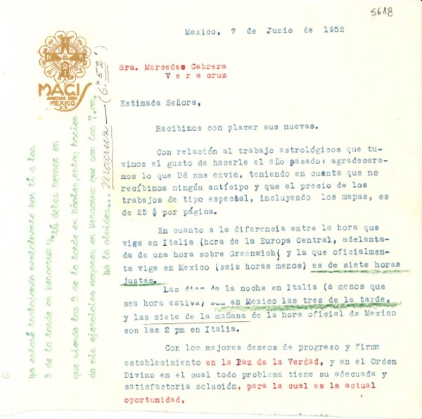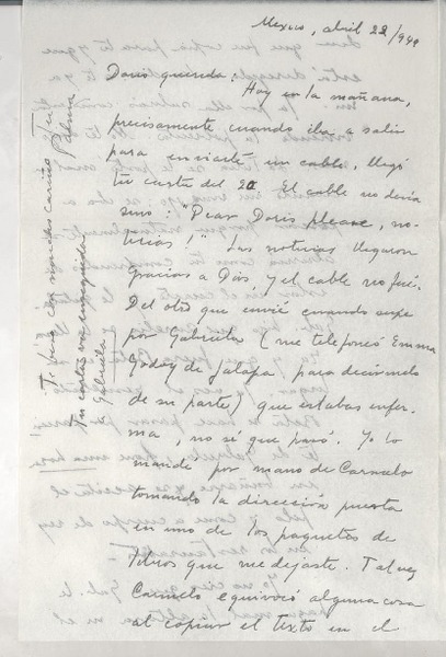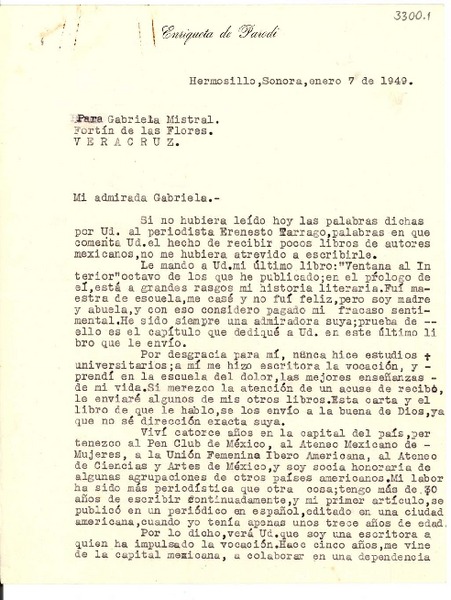 Saro, Emma - Manuscritos mexicanos - Correspondencia - Mistral, Gabriela