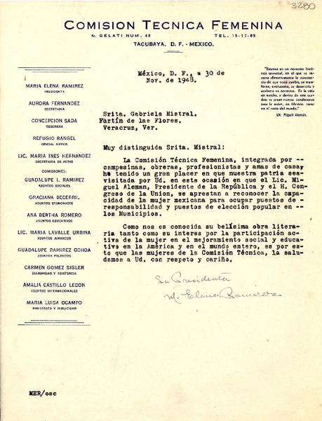 [Carta] 1942 nov. 14, México [a] Gabriela Mistral [manuscrito] Palma Guillén.