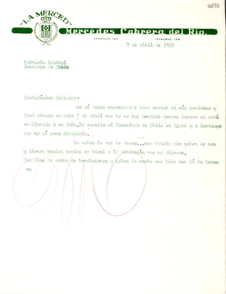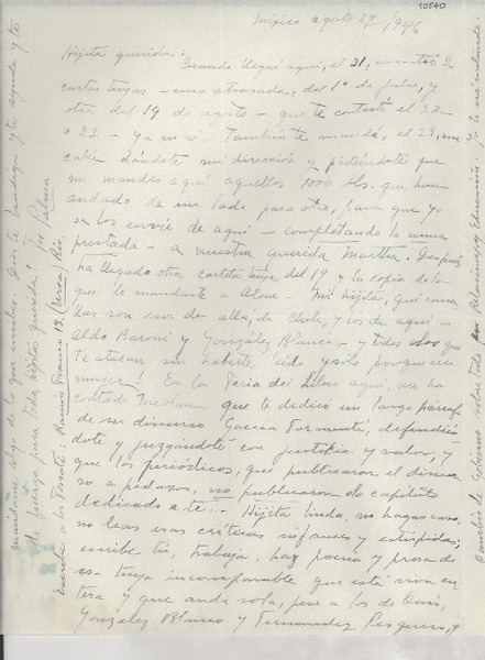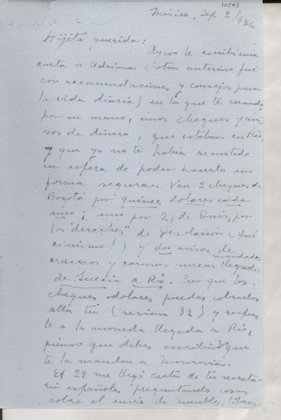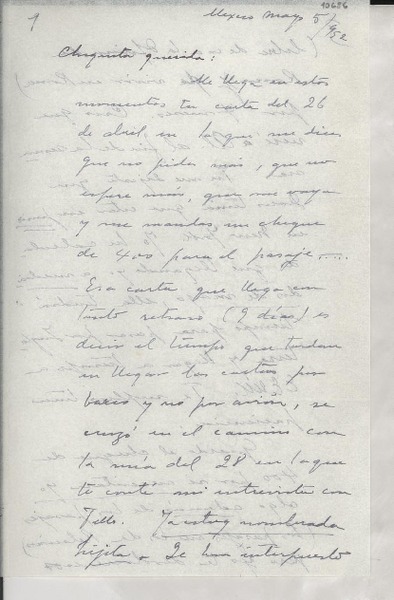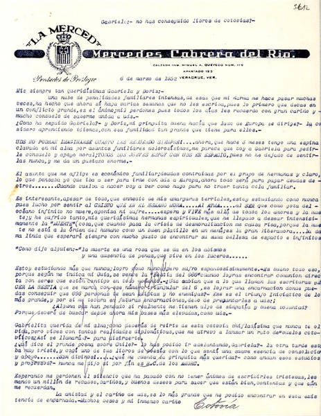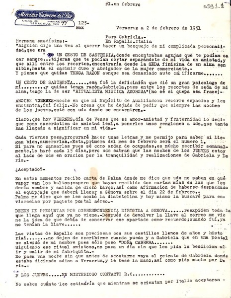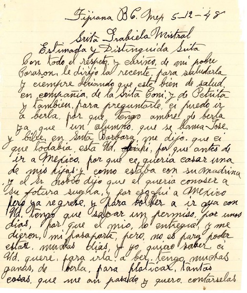 Mistral C., Blanca - Manuscritos mexicanos - Correspondencia - Mistral, Gabriela