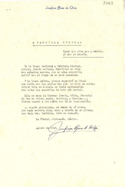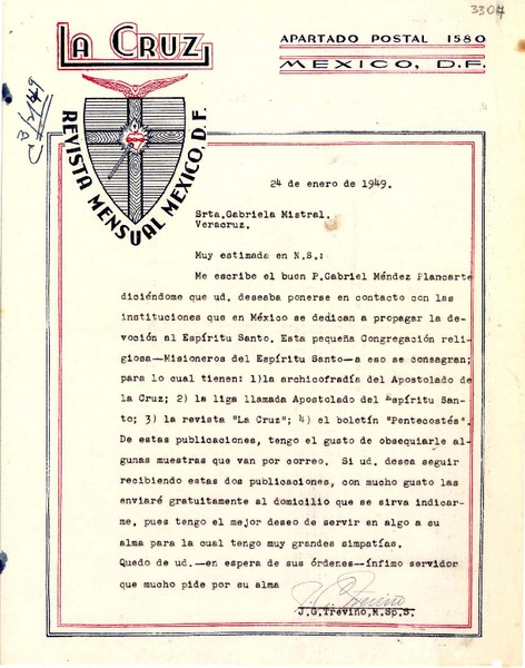 Mistral, Gabriela - Manuscritos mexicanos - Gutiérrez Rivera, G. J. - Correspondencia
