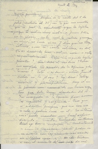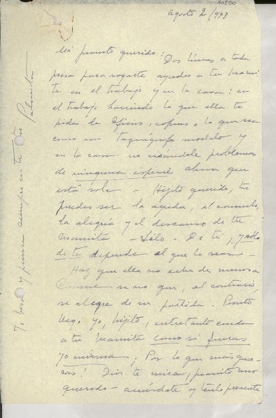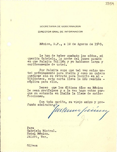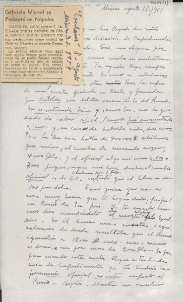 [Carta] 1943 ago. 14, México [a] Gabriela Mistral [manuscrito] Palma Guillén.