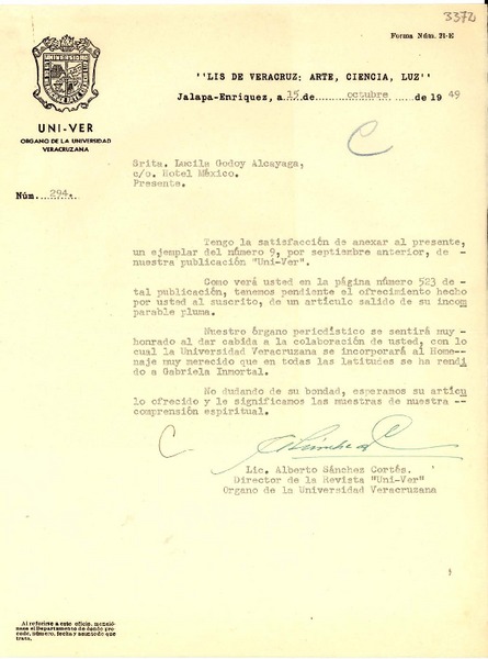 Mistral, Gabriela - Manuscritos mexicanos - Álvarez y A., Alberto - Correspondencia
