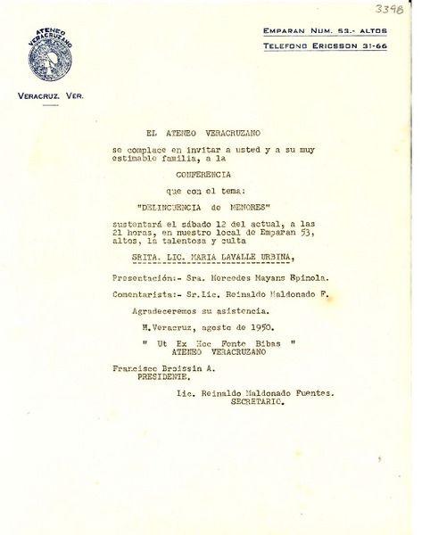 Manuscritos mexicanos - Correspondencia - Autores mexicanos - García Formentí, Arturo - Castillo Ledón, Amalia