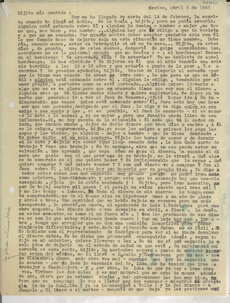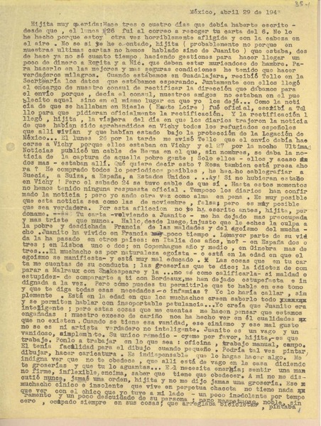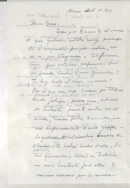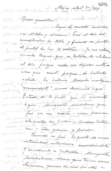 [Carta] 1943 abr. 29, México [a] [Gabriela Mistral] [manuscrito] Palma [Guillén].