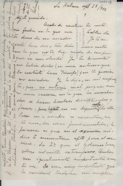 [Carta] 1942 sept. 23, La Habana [a] Juan Miguel Godoy [manuscrito] Palma Guillén.