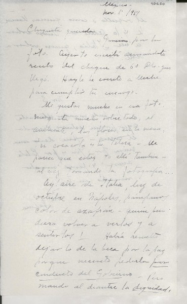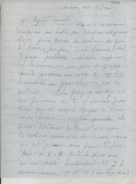 [Carta] 1942 nov. 5, México D.F. [a] Gabriela Mistral [manuscrito] Alfonso Reyes.