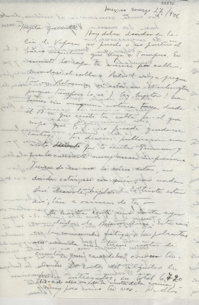 [Carta] 1942 mar. 4, México D.F. [a] Gabriela Mistral, Petrópolis, Brasil [manuscrito] [Alfonso Reyes].