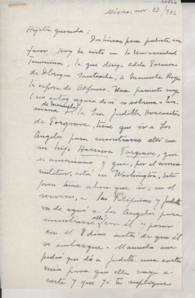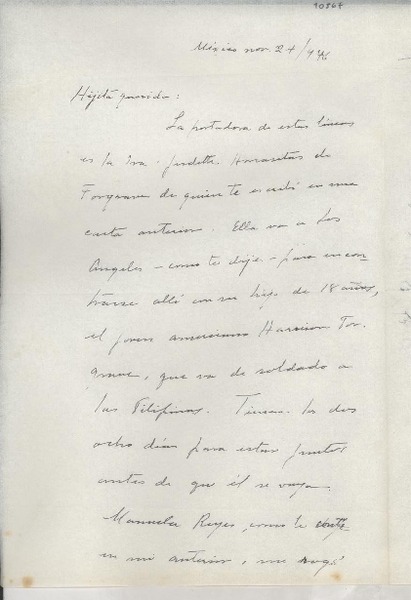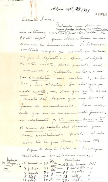 Serna Silva, Rita - Manuscritos mexicanos - Correspondencia - Mistral, Gabriela