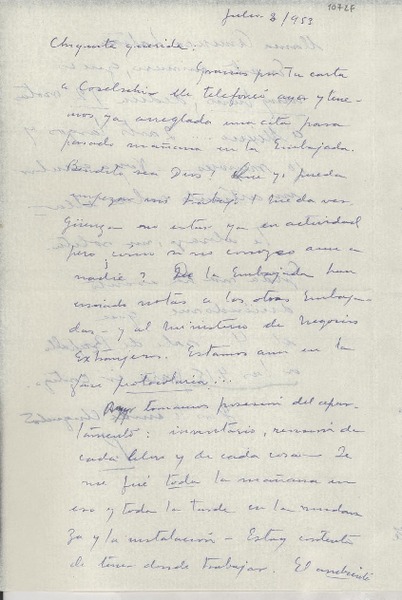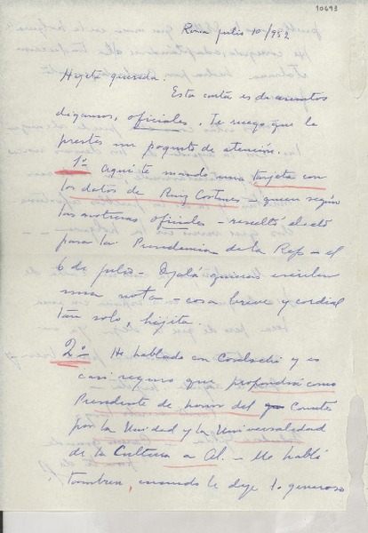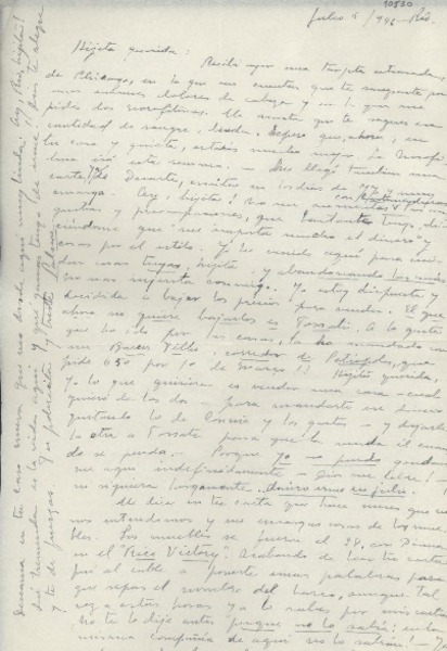 [Carta] 1933 jul. 10, París, [Francia] [a] Gabriela Mistral, Universidad de Puerto Rico, Río Piedras, [Puerto Rico] [manuscrito] Jaime Torres Bodet.