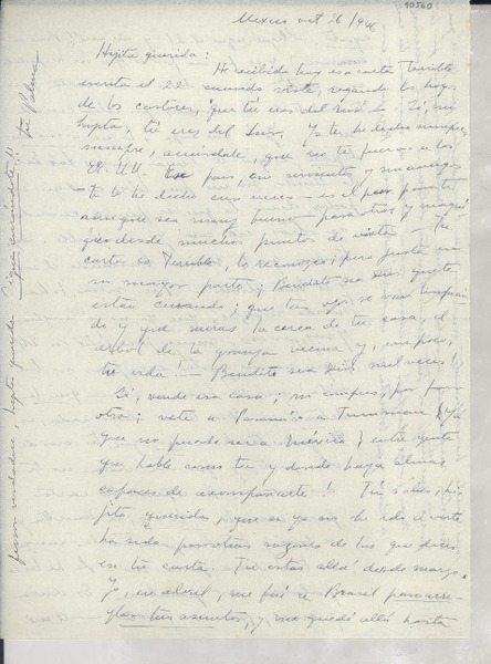 [Carta] 1942 oct. 13, México D.F. [a] Gabriela Mistral, Petrópolis, Brasil [manuscrito] Alfonso Reyes.