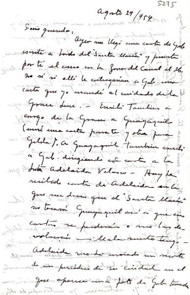 [Carta] 1934 mar. 22, abordo del "Orínoco" [a] Gabriela Mistral [manuscrito] G. J. Gutiérrez Rivera.