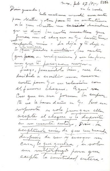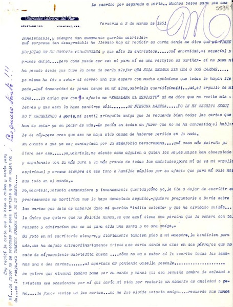 Carvajal, Magda M. de - Manuscritos mexicanos - Correspondencia - Mistral, Gabriela
