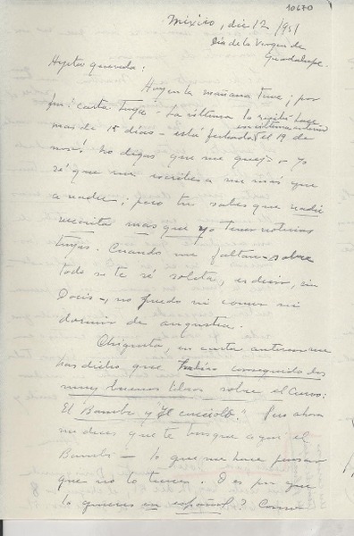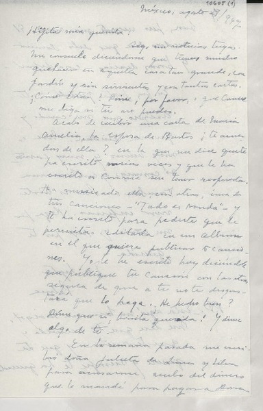 Acueros, José - Manuscritos mexicanos - Correspondencia - Mistral, Gabriela