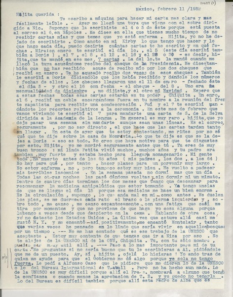 [Carta] 1939 feb. 11, México D.F. [a] Gabriela Mistral, a cargo del Consulado de Chile, Habana, Cuba [manuscrito] Alfonso Reyes.