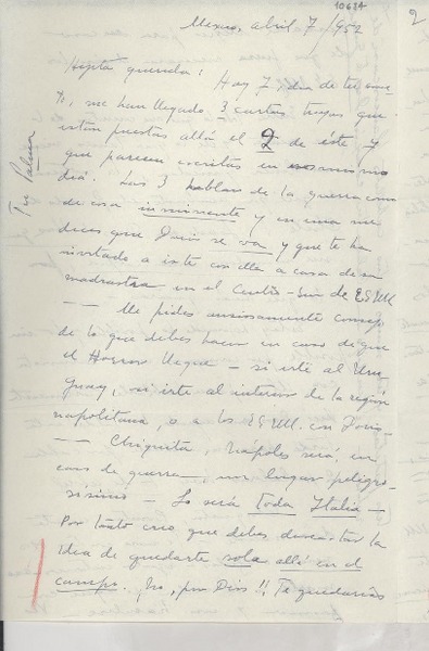 [Carta] 1942 mar. 2, México, D. F., México [a] Gabriela Mistral, Petrópolis, Brasil [manuscrito] Enrique Vincourt Dane.
