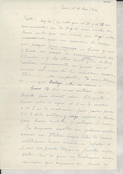 [Carta] 1933 sept. 12, París, [Francia] [a] Gabriela Mistral, Madrid, [España] [manuscrito] Jaime Torres Bodet.