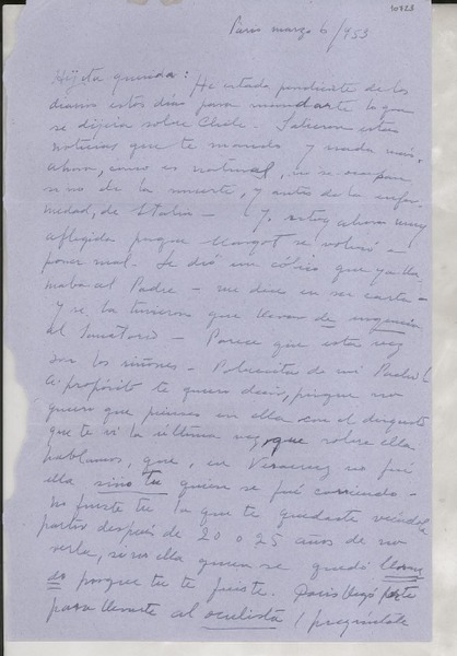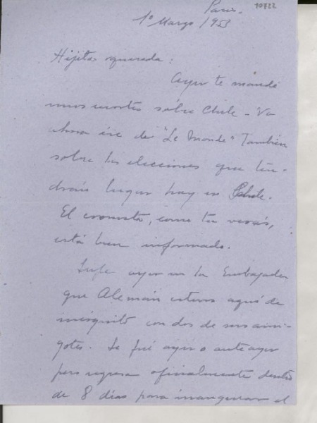 [Carta] 1934 mar. 3, Paris, Francia [a] Gabriela Mistral, Madrid, España [manuscrito] Pedro de Alba.