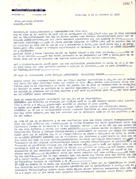 [Carta] 1925 feb. 14, México D. F. [a] Gabriela Mistral, Santiago de Chile [manuscrito] José Vasconcelos.