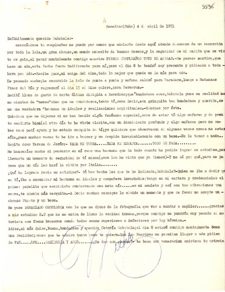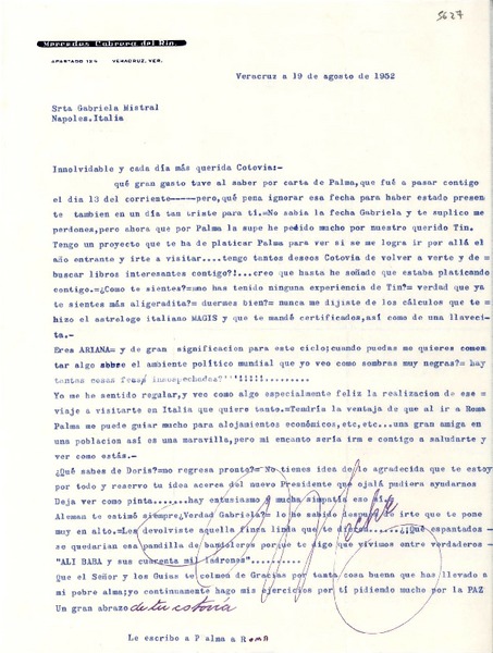[Carta] 1942 ago. 17, La Habana [a] Gabriela Mistral [manuscrito] Palma Guillén.