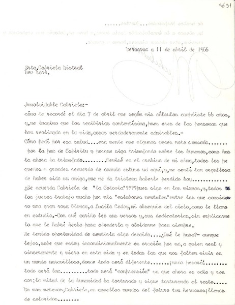 Vasconcelos de Berges, Tina - Manuscritos mexicanos - Correspondencia - Mistral, Gabriela